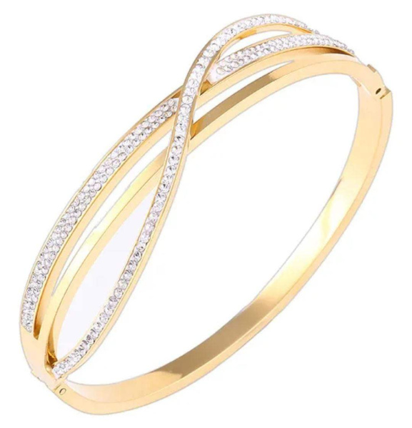 Brazalete de titanio con tachuekas de diamente de imitacion geometrico