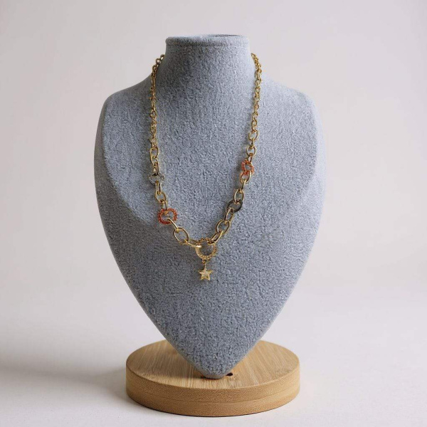 Gargantilla de eslabones combinados con dije de estrella oro laminado