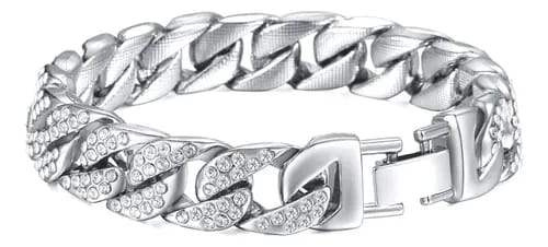 Pulsera de acero inoxidable para caballero con diamantes de imitacion