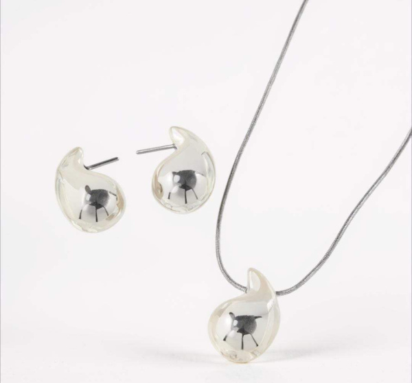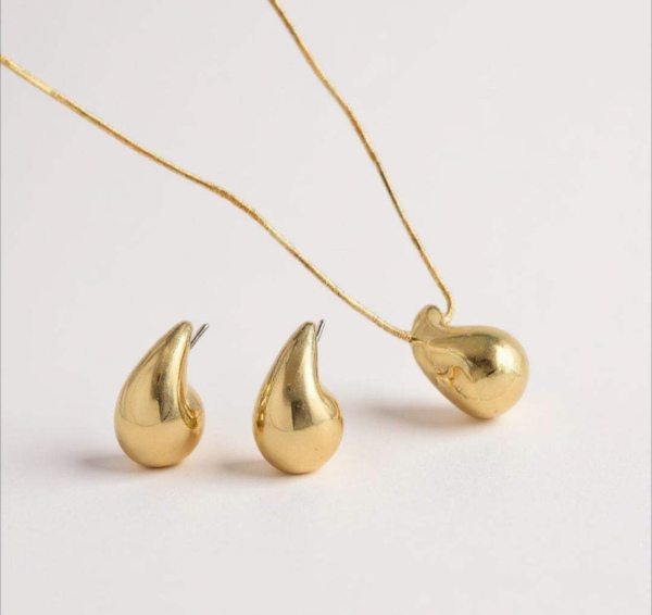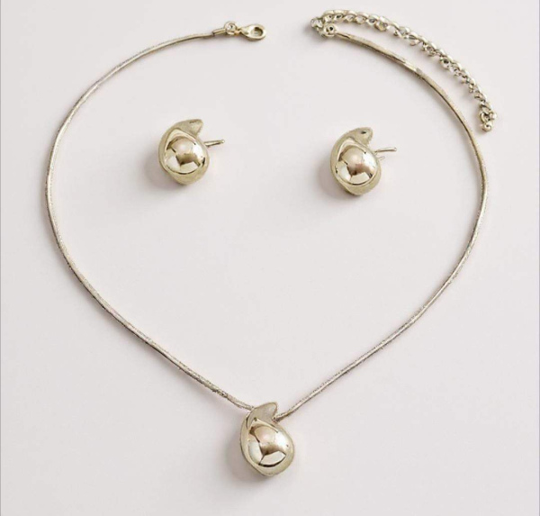 Conjunto de collar y pendientes, forma de gota, en color dorado y palata, acero inoxidable